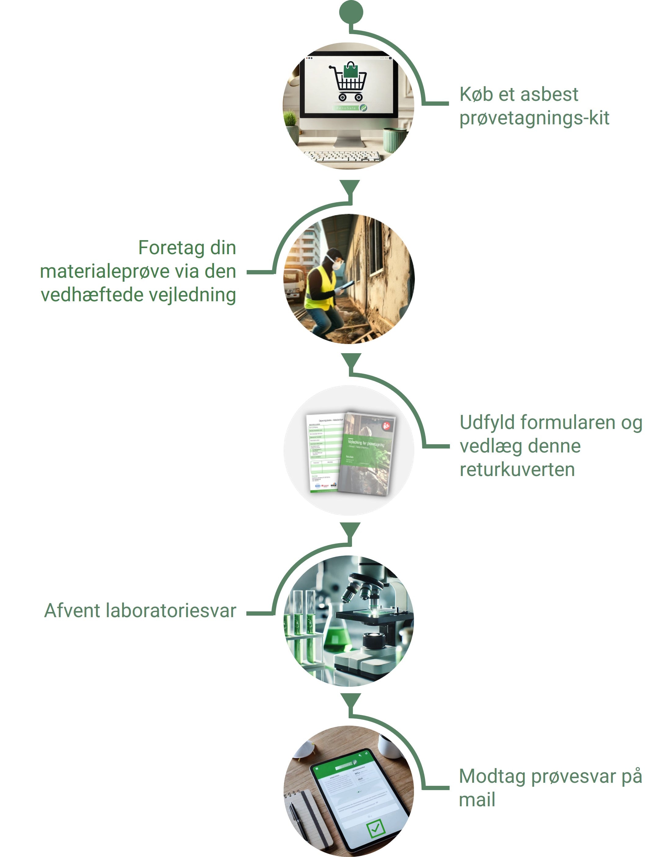 Med vores brugervenlige testkit kan både professionelle håndværkere og private nemt tage prøver. Send dem til vores certificerede laboratorium og modtag dit analyseresultat direkte på mail.